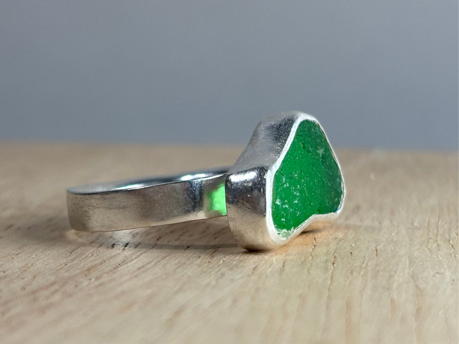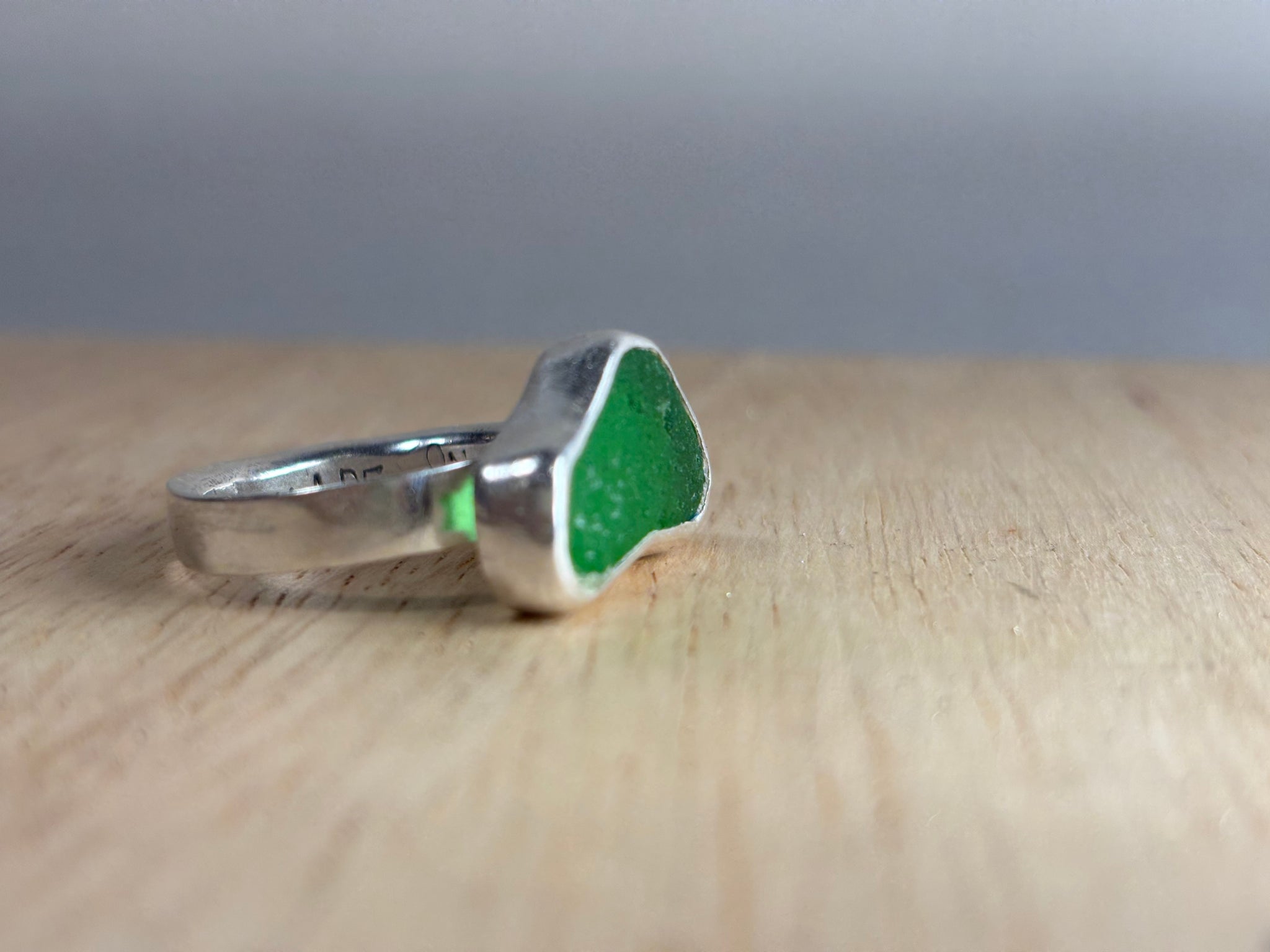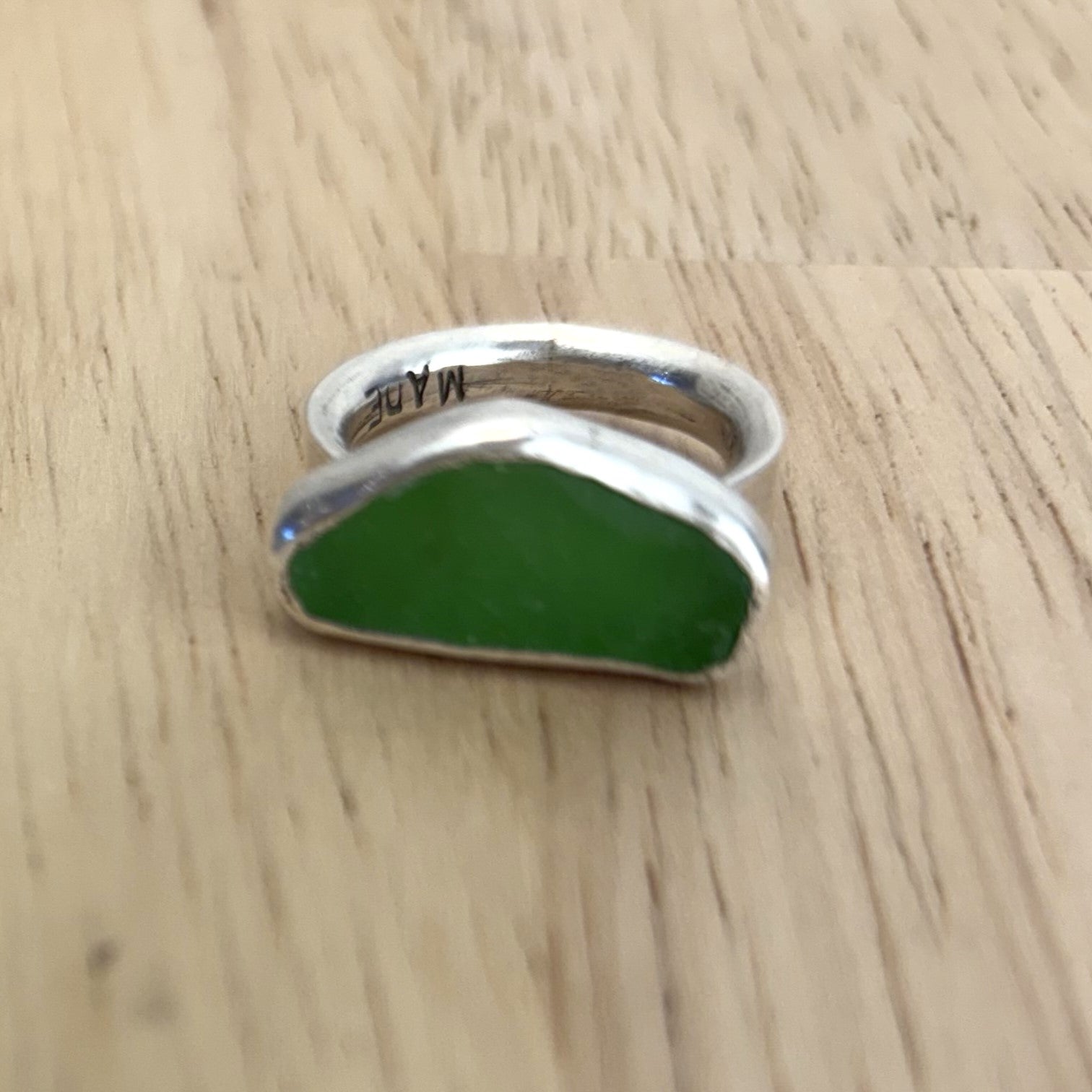 Dress up your hands with the whimsical and unique Sea Glass Solitaire ring. Each ring features a bezel set, colorful piece of sea glass on a comfortable sterling silver band. With a variety of sizes and colors to choose from, you're sure to find your perfect match. Can't find your size? Message us to create a custom piece just for you! (Limited availability, ships within 2 weeks). And if you're a sea glass collector like me, then this ring is truly out of this world - made on Mars!