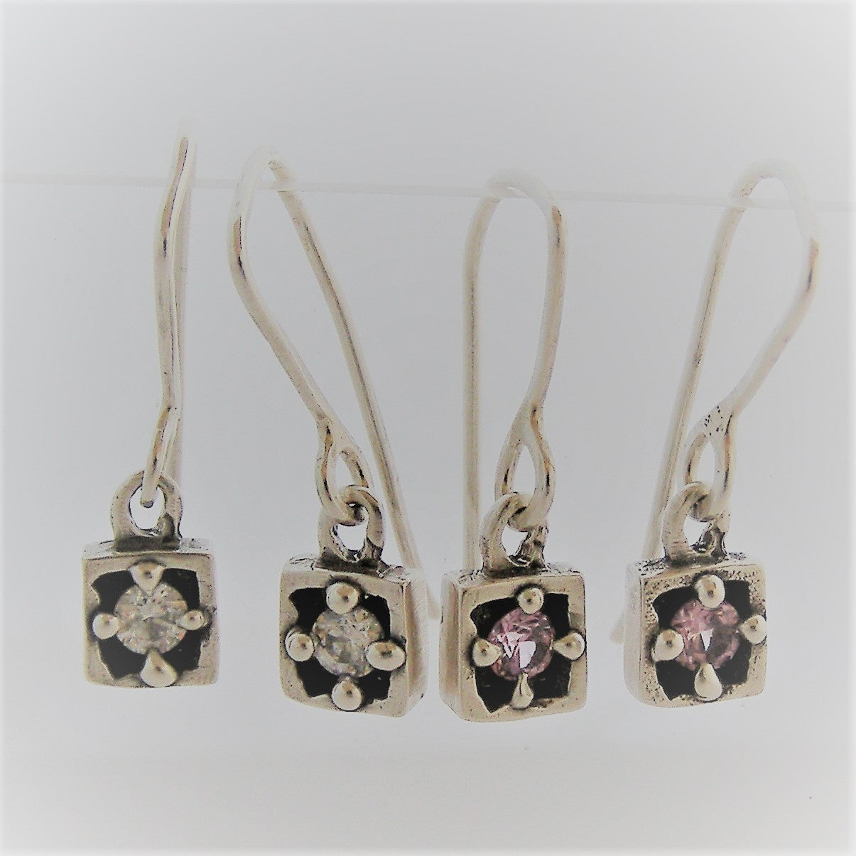 You've finally framed that perfect picture , that moment will always be remembered. What does that have to do anything or these earrings ? I finally figured out how to frame these sparkly cubic zirconias that come in an array of different colors.All sterling silver, dangling on handmade ear wire. Currently available in ruby red, crystal clear and lavender