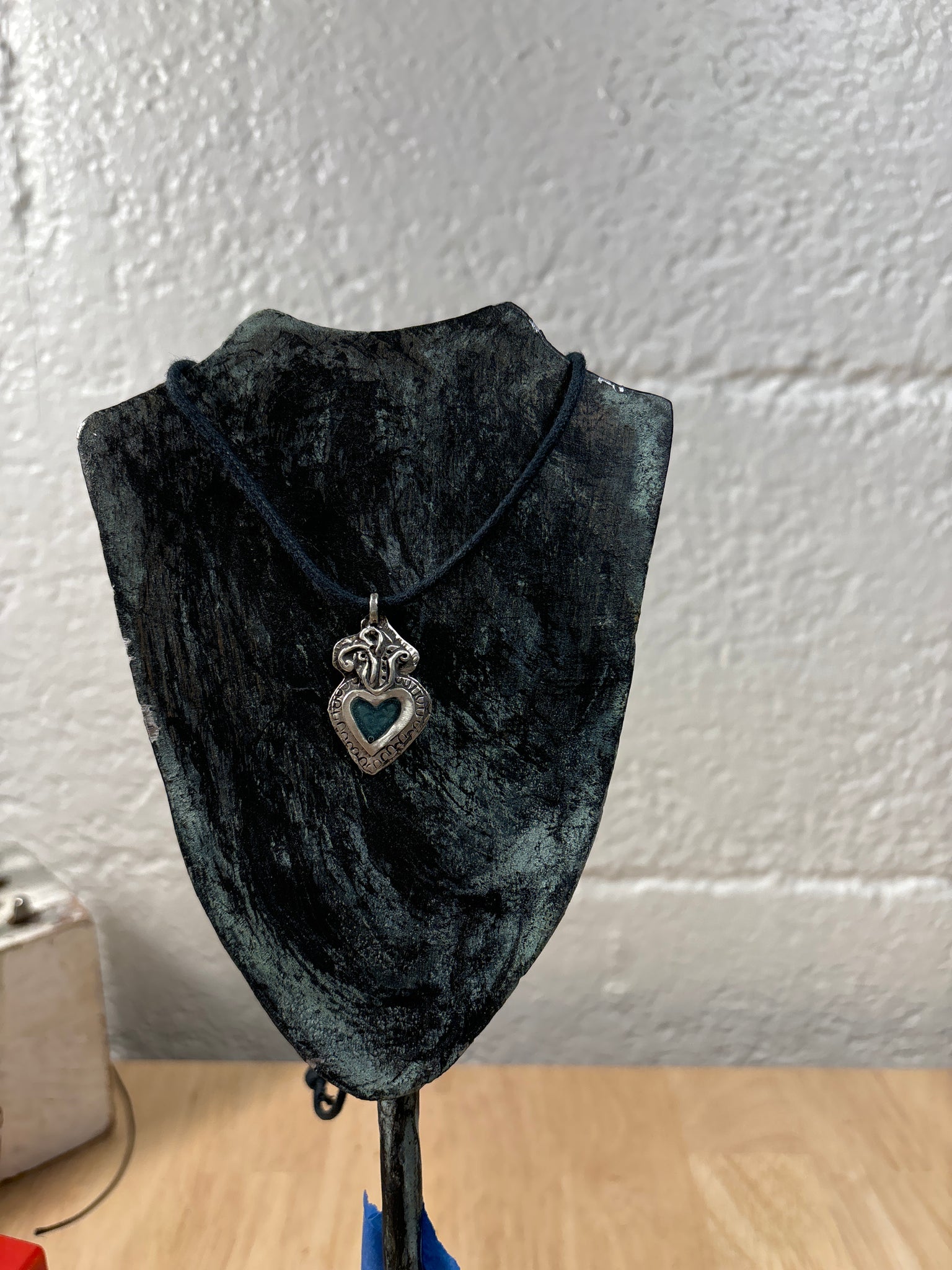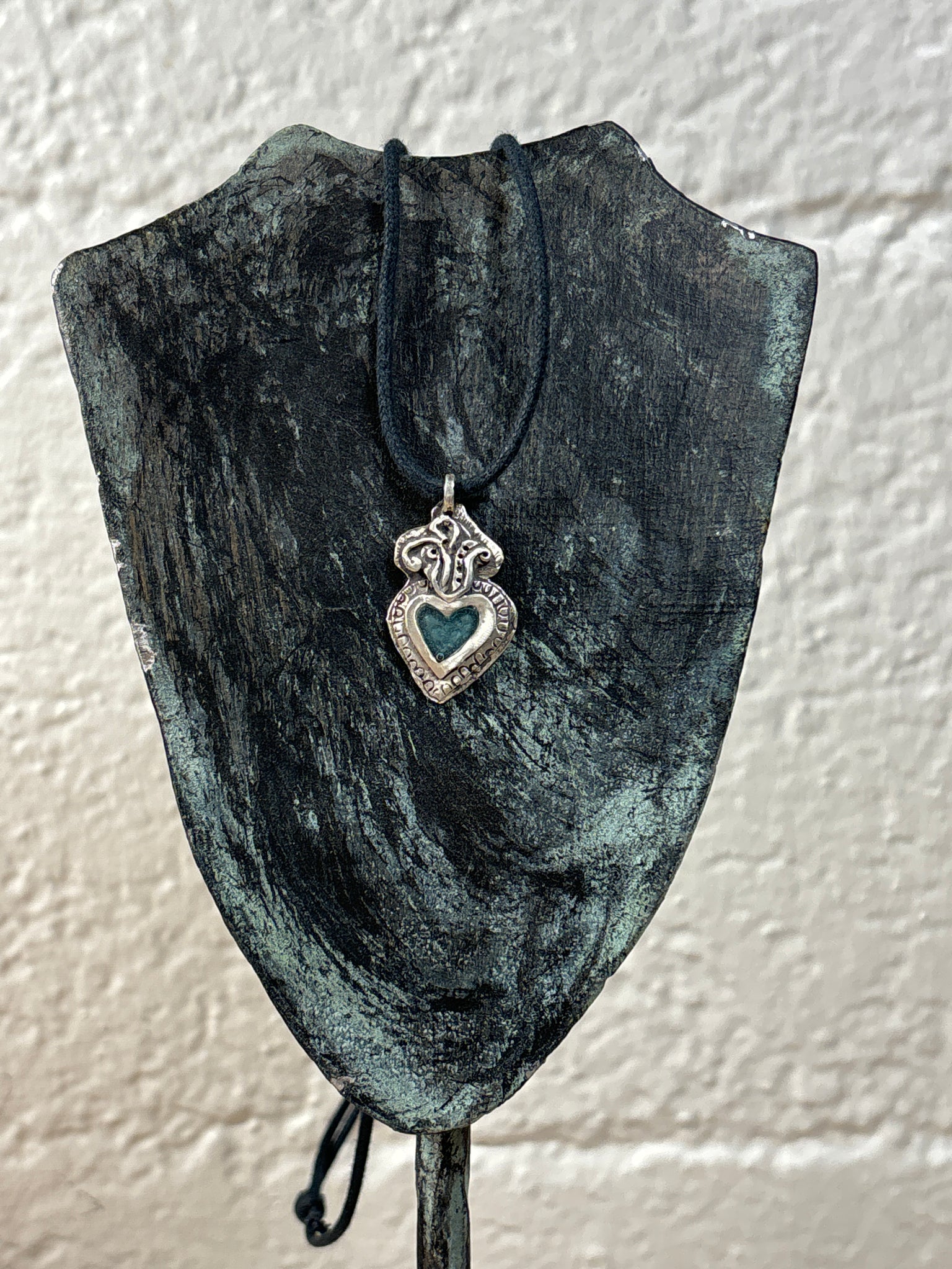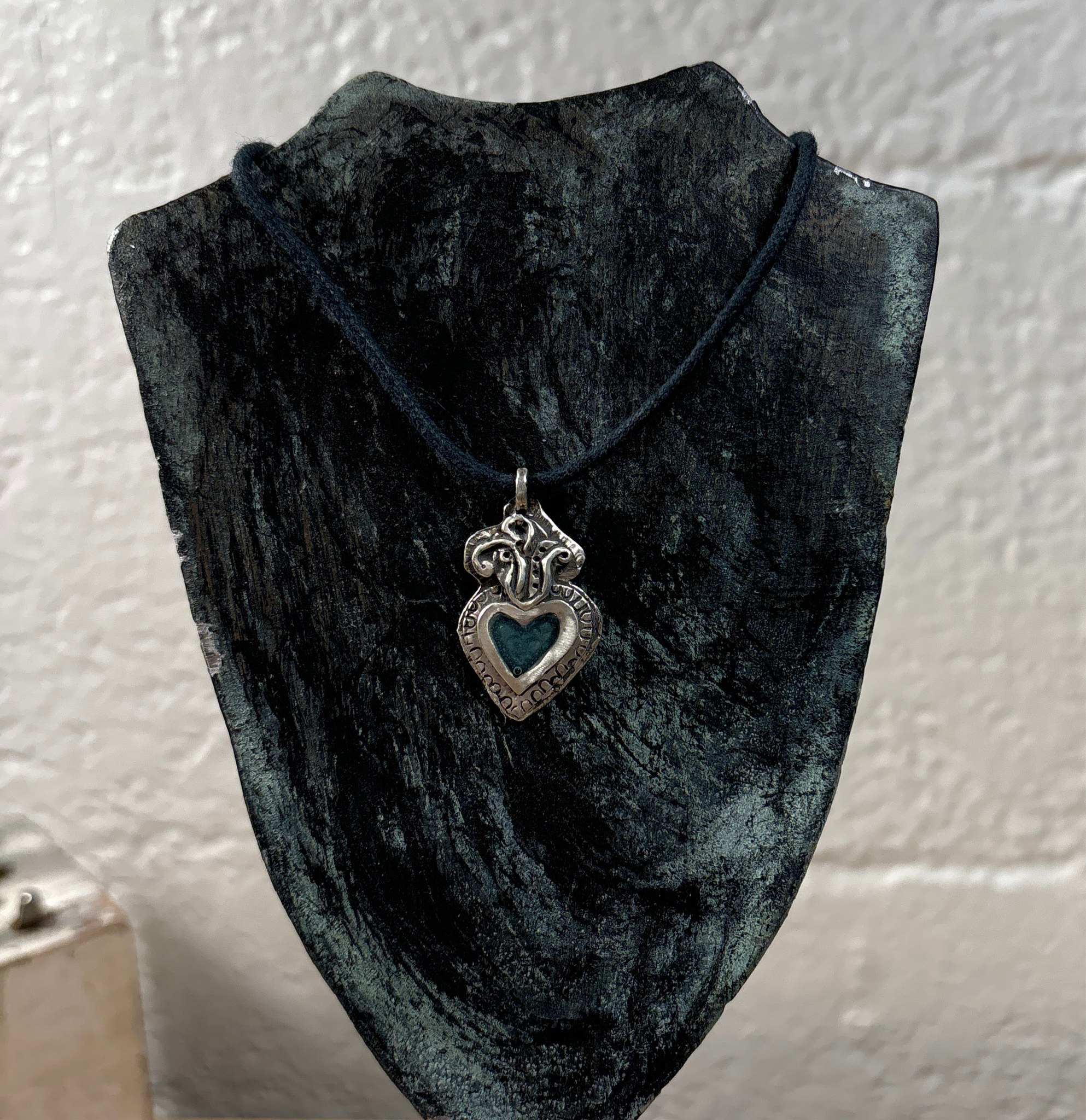 The Sterling silver Ocean Love pendant is a prominent centerpiece, a bold eye catcher. My love of the ocean inspired me to create this heart. I have filled it with blue colored resin, perhaps a glimpse into the vast ocean inside your heart. This pendant comes on a sterling silver 1.5 mm ball chain, 20 inchs in length.