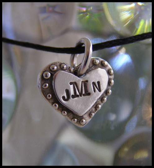 I cast each heart so no two pendants are the same, they are sterling silver, measuring about half an inch. Each can be made personal by adding the monogram of someone special, or a date of a special day. Both sides of this heart can be customized with up to 5 letters or numbers. Please email me what you want stamped or leave it plain! It comes strung on an 18" black waxed linen necklace which I have finished with sterling silver findings. Also available on a sterling silver 1.5 mm ball chain for an additional cost, check out some YuMMY Delicious Beads